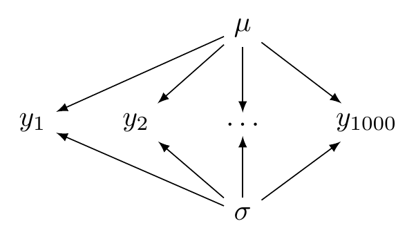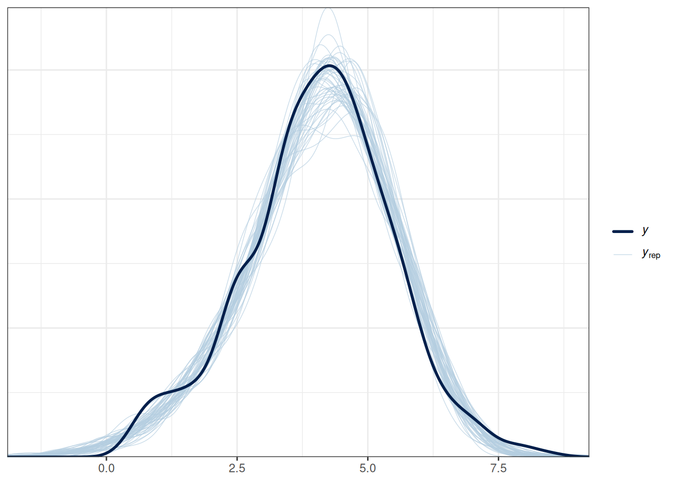 \[y_{n} \sim Normal(\mu = \hat{\beta_0} + \hat{\beta_1}\times x_{n}, \sigma = \epsilon)\]