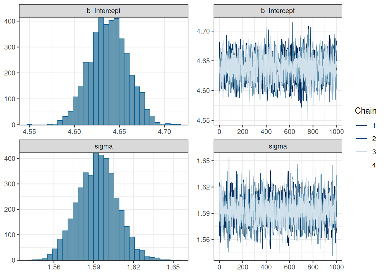 Intercept 4.64 0.02 4.60 4.68 1.00 3001 2571