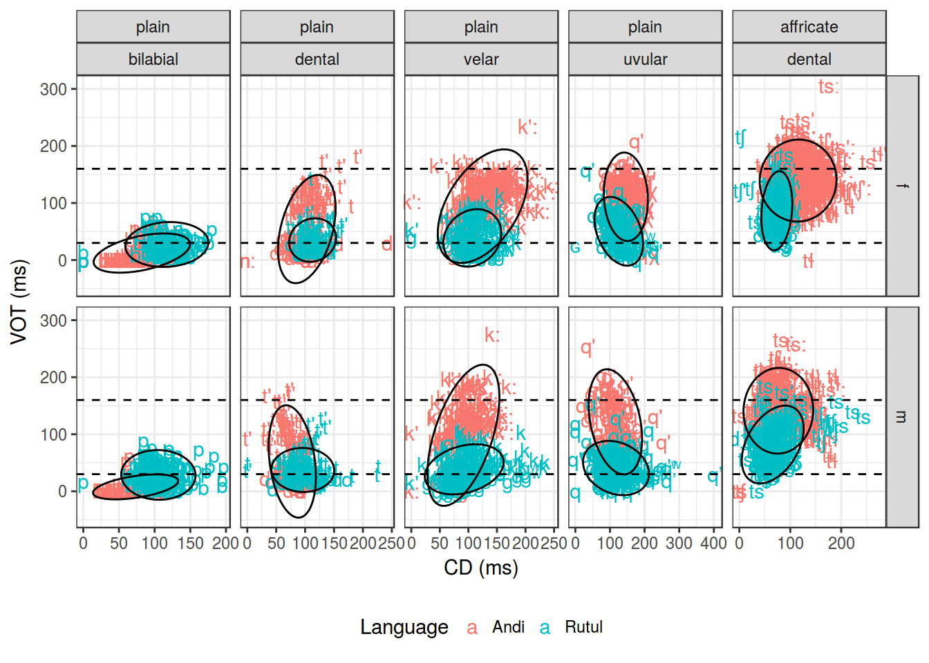 labs(y = "VOT (ms)", x = "CD (ms)")