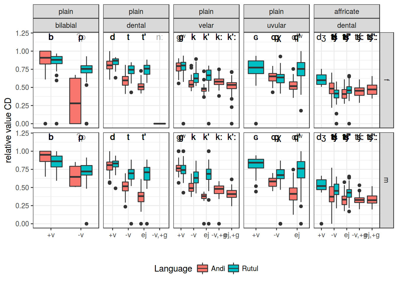 ggplot(aes(c_type, rel_vot, fill = Language, label = stop))+